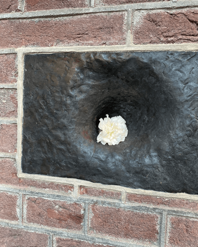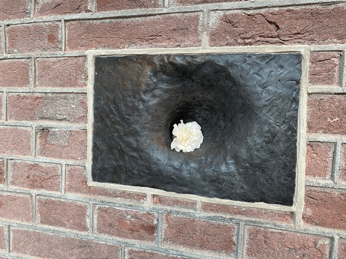 Daarom bedacht ik een klein monumentje met een levende witte anjer. Niet meteen om Bernhard te gedenken, maar wel om de kwetsbaarheid van een bloem symbool te maken van de kwetsbaarheid vrede en vrijheid. Je moet er aan blijven werken om het bij elkaar te houden. Er hoeft maar iets te gebeuren of het is mis. Net zoals iemand de anjer zomaar kan wegnemen.
