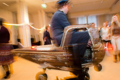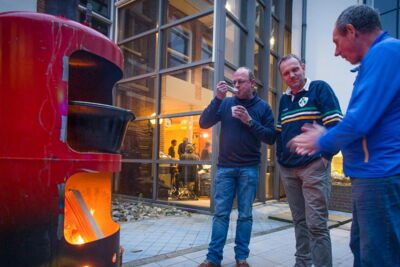 Voor de medewerkers van de gemeente Wageningen bedacht en organiseerde ik een afscheidsceremonie van het "oude" stadhuis. Dat na een fikse verbouwing in 2017 inmiddels weer heropend is. Een afscheidsfeest waarbij de in onbruik geraakte spullen uit het stadhuis een hoofdrol vervulden. Met een buitenkachel van de