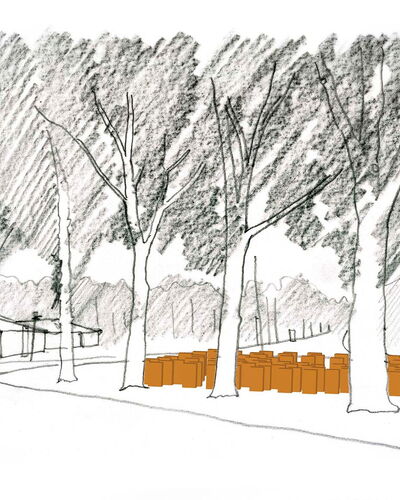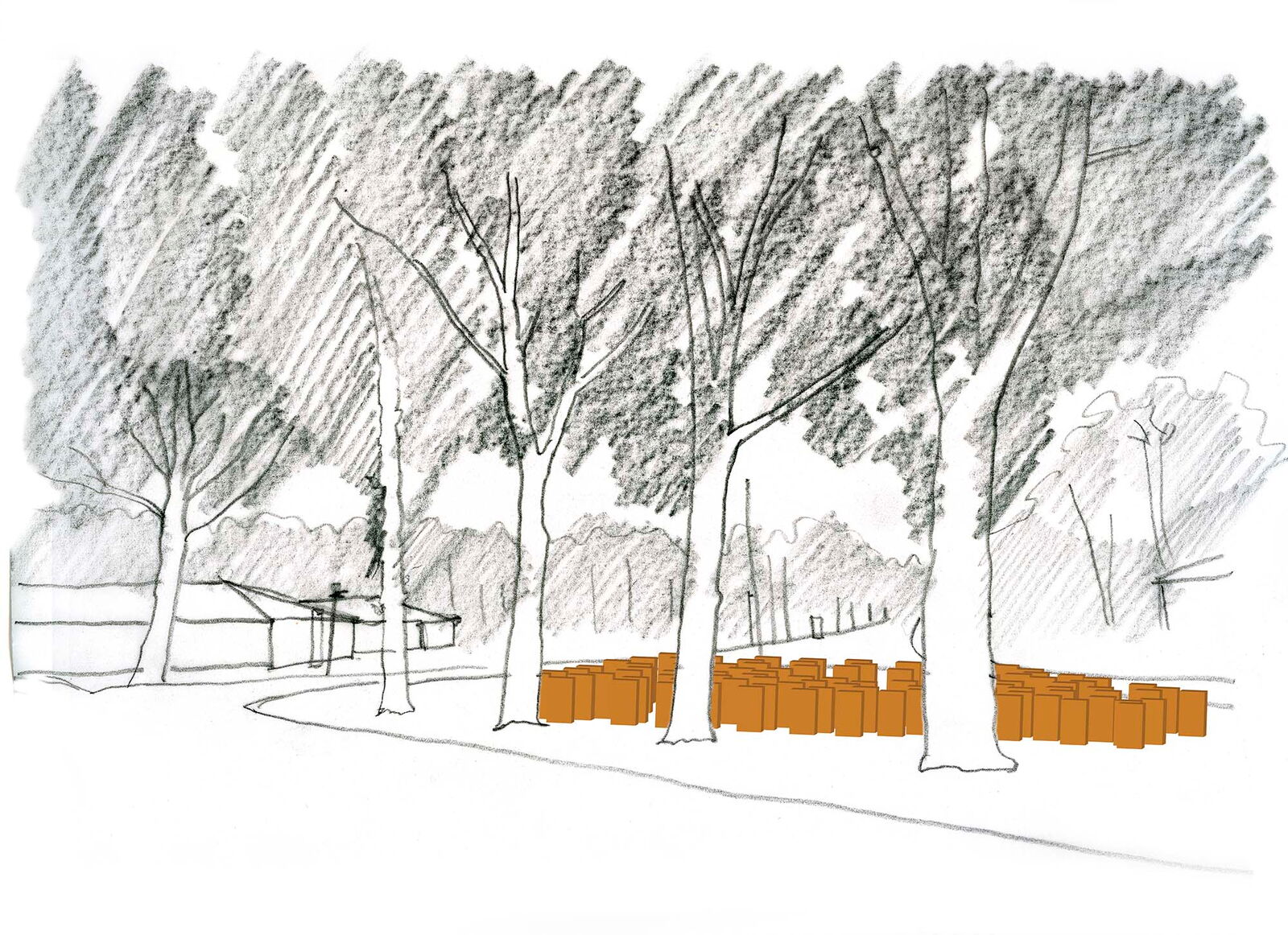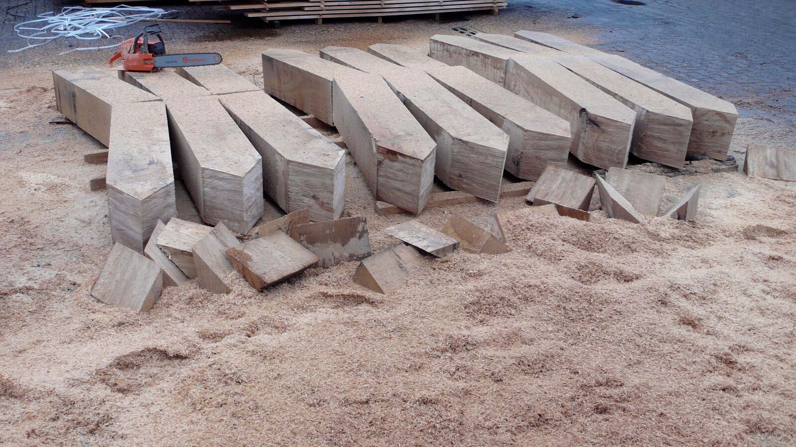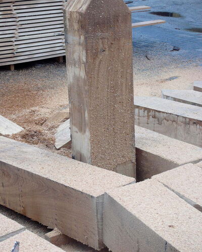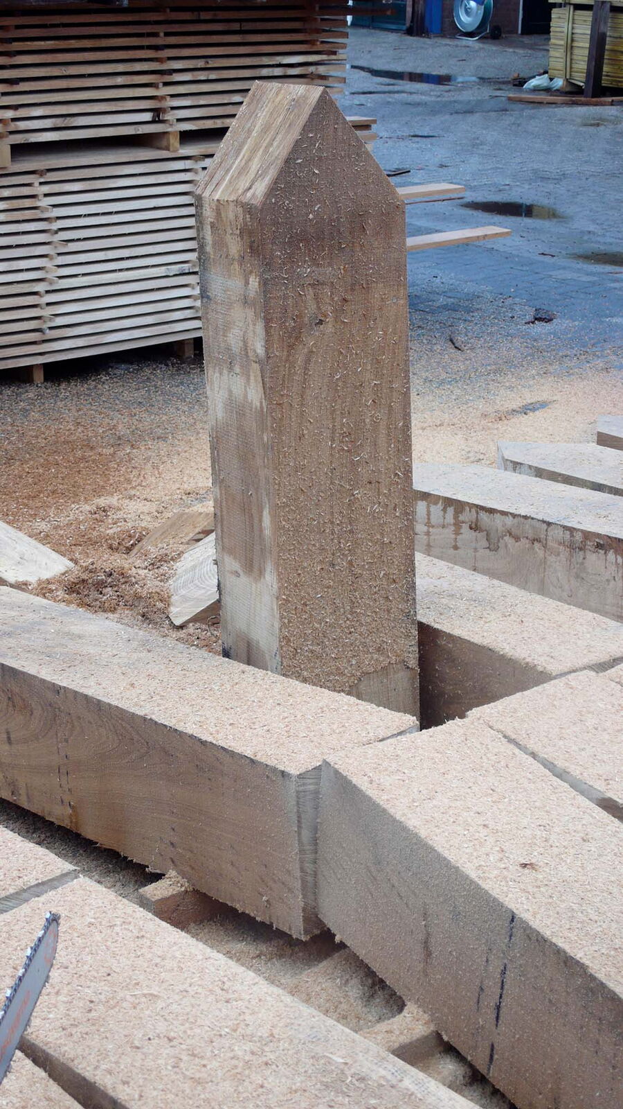 Voor zorginstelling Markenhof in Beekbergen waar ondermeer mensen met het syndroom van Korsakov wonen maakte ik een monumentaal kunstwerk bij de ingang van het hoofdgebouw. Het bestaat uit genummerde houten huisjes van inlands eiken die op de kop in de grond zijn geplaatst. Het leven van de bewoners van de